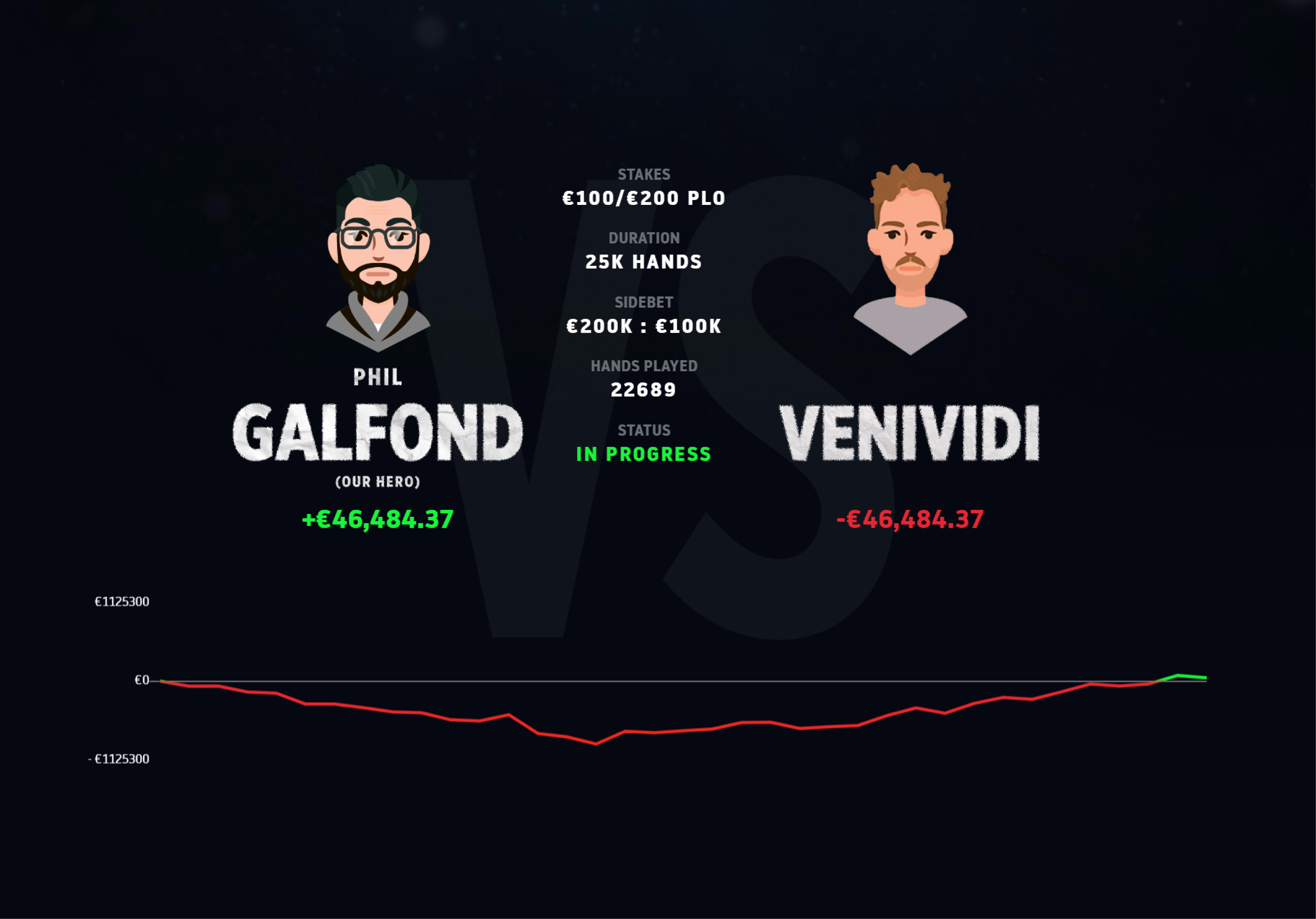 För första gången på 35 sessioner klev Phil Galfond måndagens sittning i ledning mot VeniVidi,