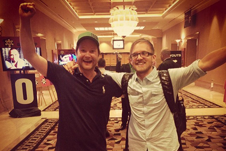 Simon tillsammans med Martin Jacobson när han tagit sig till finalbordet i WSOP Main Event 2014.
