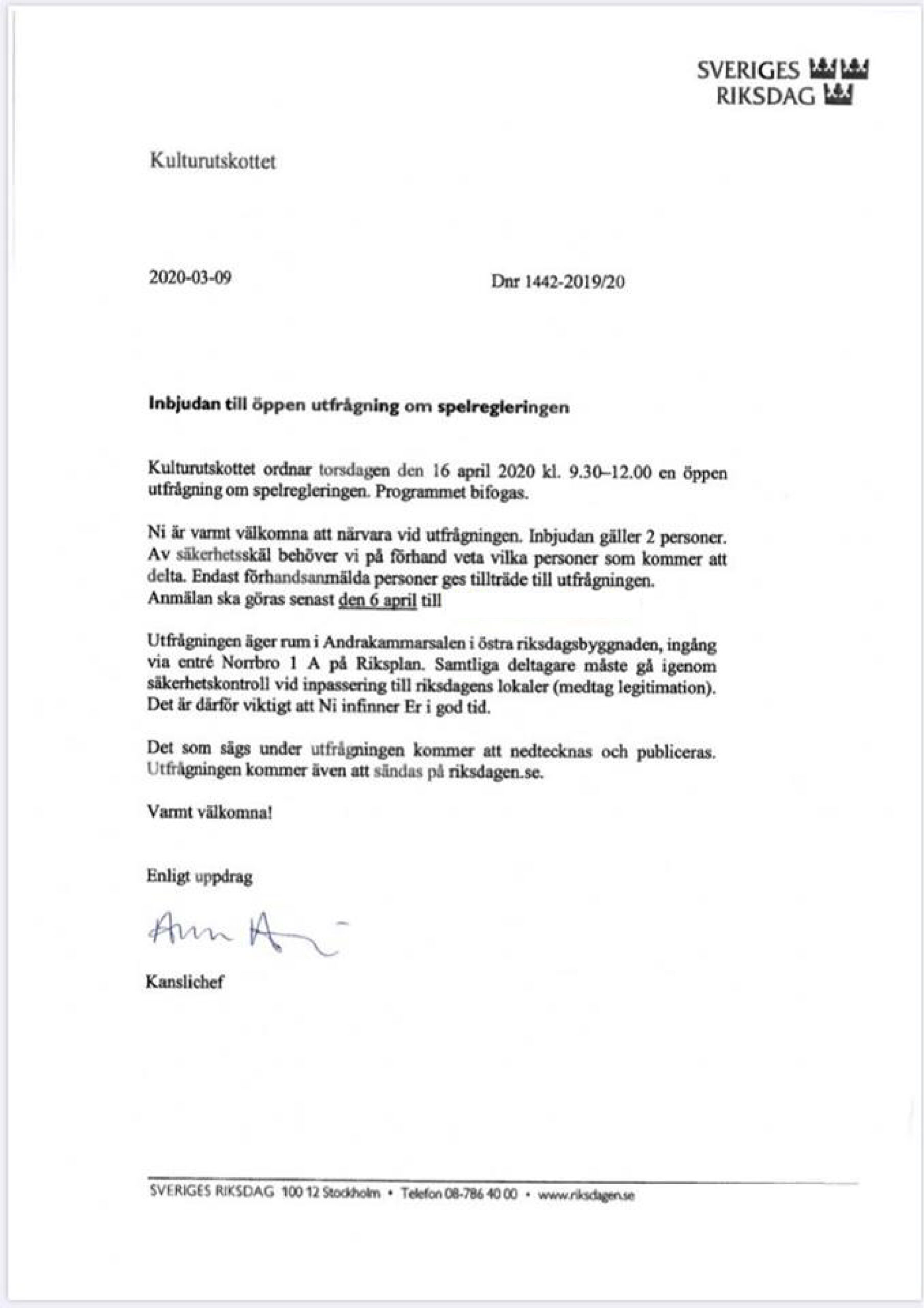 Foto: Inbjudan till öppen utfrågning om spelregleringen